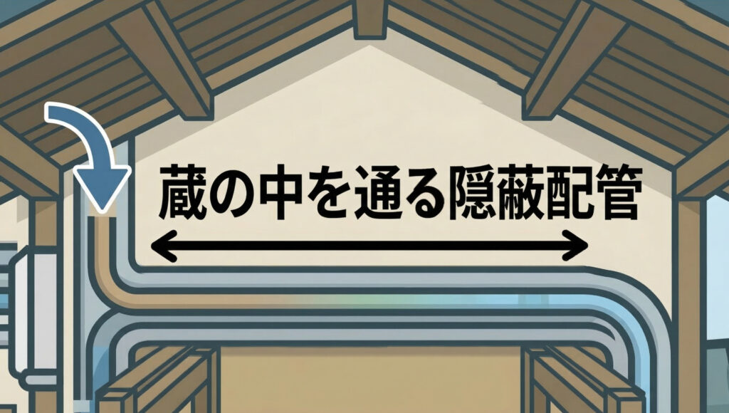 さらに難易度が高いのが、配管が壁の中(隠蔽配管)を通っており、そのルートが「蔵」を貫通しているケースです。