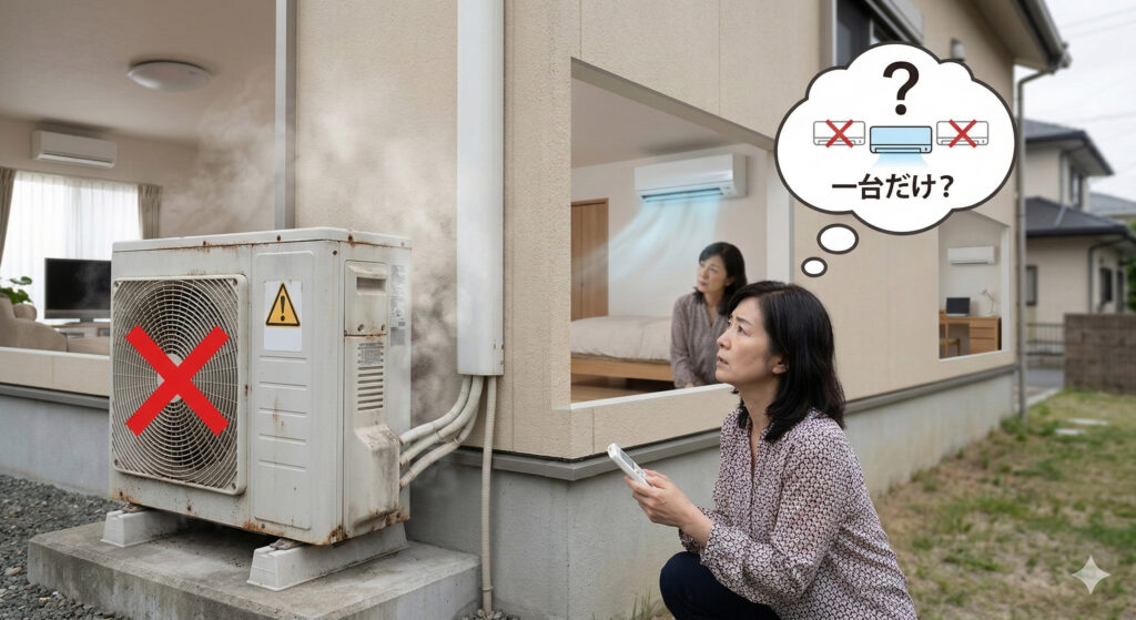 1台の室外機で複数の部屋を冷やす「マルチエアコン」。 その室外機が故障したとき、多くのユーザーが抱くのが「生きている室内機だけでも動かせないか?」という一縷の望みです。
